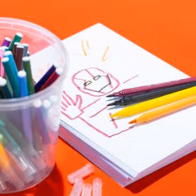Kig forbi Tegnestuen og lav din egen maske eller pynt til dit fastelavnsris. Tegnestuen er åben alle dage i vinterferien.